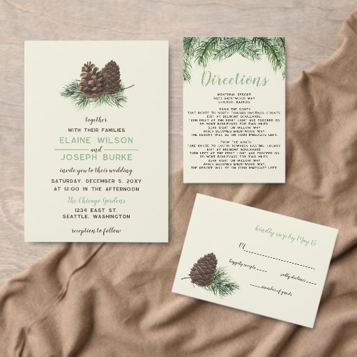 Rustic Pine Cone Winter Wedding InvitationsOntworpen door Maria G