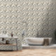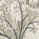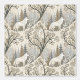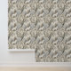 Dit serene winterwoudbehang heeft een majestueuze witte wolf in het midden, omringd door besneeuwde bomen in zachte tinten van crème, bruin, grijs en bleek blauw. Een tweede wolf is subtiel genesteld in de benedenhoek, zingend op ongezien leven in het rustige bos. Met een mix van kale vertakte en groenblijvende bomen, omlijst door delicate decoratieve elementen, roept dit ontwerp natuurlijke schoonheid, stilte en een vleugje wintermagie op. Ideaal voor liefhebbers van natuur, dierenliefhebbers en seizoensgebonden of fantasie-thema's.