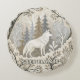 Dit serene winterbos kussen beschikt over een majestueuze witte wolf in het midden, omringd door besneeuwde bomen in zachte tinten van crème, bruin, grijs en bleek blauw. Een tweede wolf is subtiel genesteld in de benedenhoek, zingend op ongezien leven in het rustige bos. Met een mix van kale vertakte en groenblijvende bomen, omlijst door delicate decoratieve elementen, roept dit ontwerp natuurlijke schoonheid, stilte en een vleugje wintermagie op. Ideaal voor liefhebbers van natuur, dierenliefhebbers en seizoensgebonden of fantasie-thema's.
