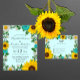 Uitnodiging voor de verjaardag van Rustic met levendige zonnebloemen, traditionele witte dagbladen en blauwgroen bloemen tegen een lichte aquatische achtergrond met babyademhaling en botanische grienery-accenten