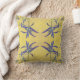 Op dit Sierkussen heeft het delicate, originele patroon van donkerblauwe bladeren op een roestgele achtergrond de blik van de oude wereld, het Franse landweefsel. Het patroon is gemaakt van een originele foto van petuniumbladeren.