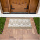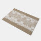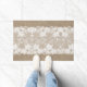 Rustisch traditioneel landboerderijmodel doormat op beige faux burlap met een prachtige witte, transparante kant met een bloempatroon en grenzen.