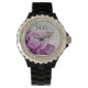 schilderen van de waterverf van een paars roos dat mengt met een subtiele rustige schors achtergrond met details van een kabelmonogram.