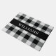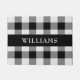 Dit klassieke zwarte en witte buffelcontrolepatroon heeft een zwarte strook over het centrum met een familienaam in witte teksten. Pas je aan met je eigen naam of geef je als cadeau.
