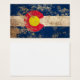 Dit ruwe ontwerp heeft een versleten en verouderde vlag van Colorado. Het ruige patroon heeft grote schuurvlekken en grove texturen waardoor het een , versleten look krijgt. Dit stijlvolle en geboeide vlagontwerp is een perfecte manier om je Amerikaanse patriottisme te shows.