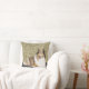 Deze gooi kussen kenmerkt mijn tekening van een prachtige lange, ruw Collie met lange adem tegen een bruine achtergrond van de florale afdruk.