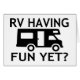 Hebben we al plezier? Natuurlijk reizen we in de RV. Niets beters dan een reis maken in een motorhuis. Witty kamping reizende humor!