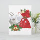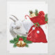 Mooie Saanen doe met haar Holiday-tas van goodies en klokken... ze kijkt rond naar de snoepriet die ze op het punt staat te pakken - schattig voor geitenliefhebbers overal