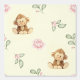 Safari dieren aap met roze bloemen en groen op crème voor baby meisje kinderkamer behang ©OctopusArts & TanyaArtsDesign