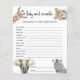 Safari Oerwoud baby shower uitnodiging met een waterverf van een giraffe, luipaard, olifant en zebra. "Er komt een wilde aan." Overeenkomende objecten beschikbaar. ANTWOORDEN: VERLANGENS, HUILEN, FLES, NACHTLICHT, SLAAP, KINDERWAGEN, EPIDURAAL, BOER, HOGE STOEL, LUIERTAS, SWADDLE