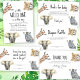 Safari Oerwoud baby shower uitnodiging met een waterverf van een giraffe, luipaard, olifant en zebra. "Er komt een wilde aan." Overeenkomende objecten beschikbaar.
