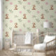 Safari dieren giraffe met roze bloemen en groen op crème voor baby meisje kinderkamer behang ©OctopusArts & TanyaArtsDesign