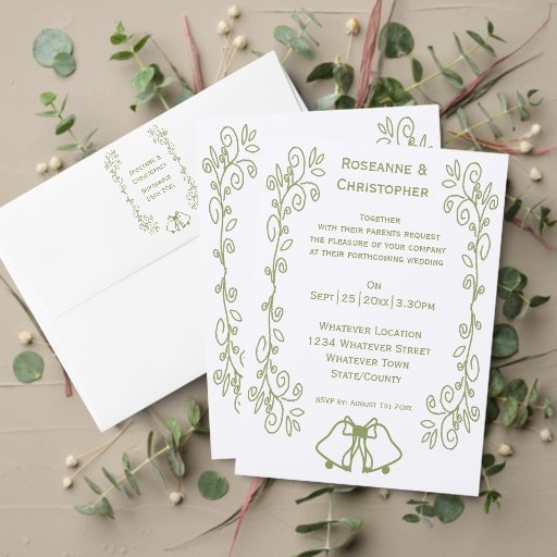 Sage Bells Scrollwork Ontwerp Wedding Kaart