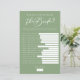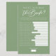 A chic sage green bridal shower game How Well Do You Know the Bride for an outdoor forest party. Order these trendy paper sheets for a fun bride trivia game friends. A fun bachelorette party game with a minimalist solid color scheme.
