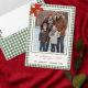Share your favorite moments of the season in style! This charming Christmas ornament feature a soft sage green gingham plaid background paired with a festive red bow for a classic, cozy look. With space for your own photo and text, it’s perfect for including a family portrait, travel memories, or a special highlight from your year.