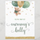 Waterverf Teddy Bear Sage Green en Gold Balloons Hoe groot is mama's buik voor Baby shower. Het ontwerp kenmerkt een elegante moderne lay-out van de stijltekst. Als u geavanceerde wijzigingen wilt aanbrengen, selecteert u de optie "Klik om verder aan te passen".