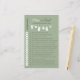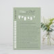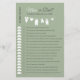 Vermaak uw gasten met dit charmante minimalistische "Guess Who" -spel. De handgetekende waslijn met kleine babykleding op een zacht saliegroene achtergrond biedt een perfecte ijsbreker en een leuke activiteit voor uw baby shower. Dit spel maakt deel uit van het Minimalist Clothesline Baby shower collectie, waardoor het een mooie aandenken is en een gemakkelijke manier om ervoor te zorgen dat uw evenement prachtig op elkaar is afgestemd. ©Susanne Sachers – Sunny Mind 🌞