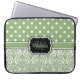 Sage Green Monogrammed Damask Polka Dot Laptop Sleeve