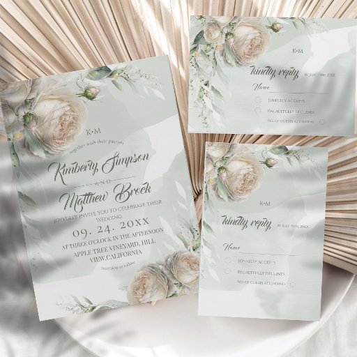 boho weddingrustic weddingboho wedding invitationroses weddingroses wedding invitewhite roseschic elegant stylish soft pastelwatercolor greeneryflora botanical gardenphoto