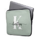 Deze eenvoudige, elegante saliegroene 13-inch laptophoes met uw voornaam in een trendy scriptlettertype in zwart en uw eerste initiaal in een modern petten lettertype in wit is ideaal voor u. Het is stijlvol en trendy en toch zeer klassiek. Het is uniek - net als jij!