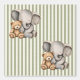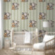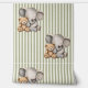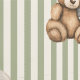 This adorable watercolor wallpaper features a sweet elephant snuggled up with a teddy bear, perfect for creating a whimsical nursery or child's room. The gentle illustration, set against a charming sage green striped background , evokes a sense of warmth and comfort. It's an ideal choice for parents looking to add a touch of playful innocence and serene beauty to their little one's space. This design brings a heartwarming story of friendship and cuddles to any room, making it a truly special addition to your home decor.