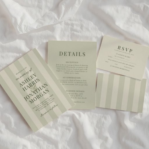 Sage Green Stripes Wedding Invitation