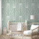 Sage groen en wit art deco patroon behang