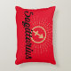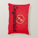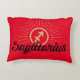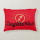Astrology themed accent gooit kussens uit met gouden starburst geaccentueerd Sagittarius zodiasymbool met zwarte tekst op rode achtergrond