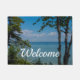 Welkom doormat met een zeilboot drijft door de fantastische kleuren van het water op het meer van Huron op Mackinac Island. Het is adembenemend. Op zoek naar meer prints of producten? Je kunt mijn winkel bezoeken: http://www.zazzle.com/timelessmomentsphtgy Deze foto is genomen door Jennifer White met Timeless Moments Photography. Alle afbeeldingen zijn copyright © Timeless Moments Fotografie.