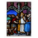 Sint Ambrose confronteert keizer Theodosius met gekleurde glaskunst. Ambrose was een bisschop van Milaan die een van de meest invloedrijke kerkelijke figuren van de vierde eeuw werd. Hij wordt beschouwd als een van de vier oorspronkelijke dokters van de kerk. Patron Saint of bee keepers; bijen; kaarsmakers; huisdieren; Frans Commissariat; leren; Milaan, Italië; studenten; wasraffinaderijen