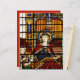 Gedetailleerde informatie in dit fotografische afbeelding van een gekleurd glazen raam met Saint Cecilia - de beschermheilige van muziek, met een pijp-orgaan en een kersub/kind met harp.