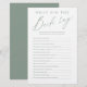 Vermaak je gasten met dit leuke "wat zei de bruid" spel, met stijlvol modern script en tekst in salie groen en wit, eenvoudig en schoon, geweldig voor bruidsfeest, koppel feest en huwelijksfeesten.