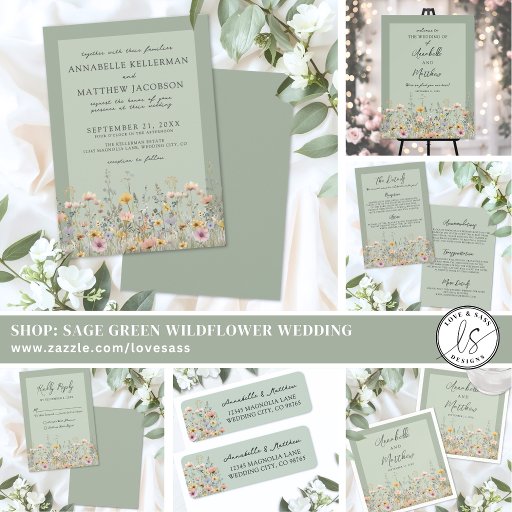Wildflower Elegant Sage Green Floral WeddingOntworpen door Jo P.