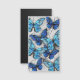 Verticale samenstelling van realistische, blauwe en witte morfovlinders op grijze getextureerde achtergrond. Morpho blauwe vlinder.