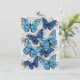 Verticale samenstelling van realistische, blauwe en witte morfovlinders op grijze getextureerde achtergrond. Morpho blauwe vlinder.
