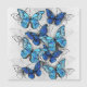Verticale samenstelling van realistische, blauwe en witte morfovlinders op grijze getextureerde achtergrond. Morpho blauwe vlinder.