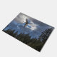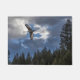 Een mooie Sandhill Crane vliegt boven de bomen.