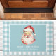 Santa Blue Gingham gepersonaliseerde kerst Deurmat