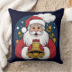 Bring holiday cheer to your home with this festive Santa Claus pillow featuring a jolly Santa holding a golden bell, surrounded by falling jingle bells and stars on a deep blue background. This cheerful design is perfect for Christmas decor, holiday couch accents, and adding a cozy, cartoon-style touch to any room. Makes an excellent Christmas gift or stocking stuffer for kids and adults who love classic holiday themes.
