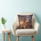 This charming square pillow captures the magical tranquility of Christmas Eve. Santa is taking a well-deserved break, cozy by a roaring fireplace, softly playing a tune on his mandolin/banjo as the full moon shines through the window. Stockings are hung with care, and a bounty of gifts awaits.