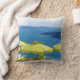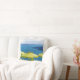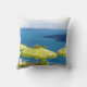 Cocktails van het Zee. Breng een vakantie met levendige kleur naar uw sofa, stoel of bed met deze charmante kussen. Afbeeldingen is een kleurrijk schilderij van een uitnodigend restaurant in Santorini Griekenland. Heldere groene paraplu's tegen mooi blauw van het Egeïsche zee. mediterrane kleuren.