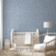 Grafisch ontwerp, van de bladeren van Floral, geschetst in, glas-in ruis, getextureerde patronen-getoond in kleuren, van viool-blauw, blauw-grijs, zwart, en wit.