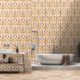 Met een speels giraffenpatroon omringd door gestileerde palmen in warme, aardse tinten, brengt dit ontwerp een gevoel van avontuur en vreugde in elke ruimte.