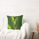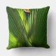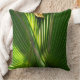 Een gevallen blad, droog en bruin, rust op een zaagpalmettoschijfje in de bossen. De originele foto van ZoeSPEAK op dit vierkante Sierkussen shows het accordeonachtige patroon van de palmschijfjes, dat opent als een natuurlijke ventilator. De tinten geel groen zien er prachtig uit in het zonlicht en de schaduwen.