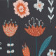 Donker bloemmotief met Scandinavische blush roze en zeeen schuimbloemen. Originele kunst van Nic Squirrell.