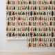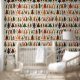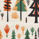 Folk art quilt illustratie met kerstbomen, vormen in vet kleuren. Scandinavische stijl