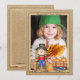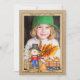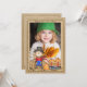 Stuur warme herfstgroeten en een recente foto van je kleine naar familie en vrienden met dit leuke ontwerp. De jute achtergrond heeft een lachende vogelverschrikker en een wagen vol pompoenen. Ruim voldoende ruimte achterop voor een lang bericht.
