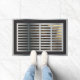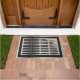 Een enge demon Halloween Novelty Doormat. Een spookkige demon met rode ogen, verstopt onder een zijdelingse graat.