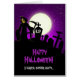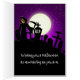 De Grim Reaper in een graf met een volle maan en paarse achtergrond. Erg leuk en eng ontwerp voor je Halloween wenskaart ontwerp.