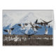 Gedestilleerd met een spectaculair afbeelding van Canada Geese (Branta canadensis) en sneeuwganzen (Chen caerulescens) die op de achtergrond in de lucht langs de wederkerige Arm van Alaska met de verbluffende Keniagebergten duiken. Door Ted Raynor
